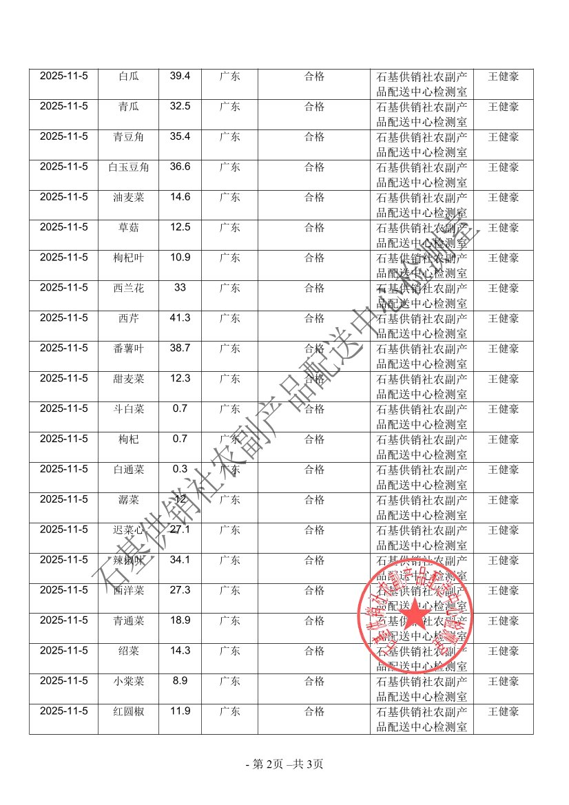 2025年11月05日蔬菜农药残留检测