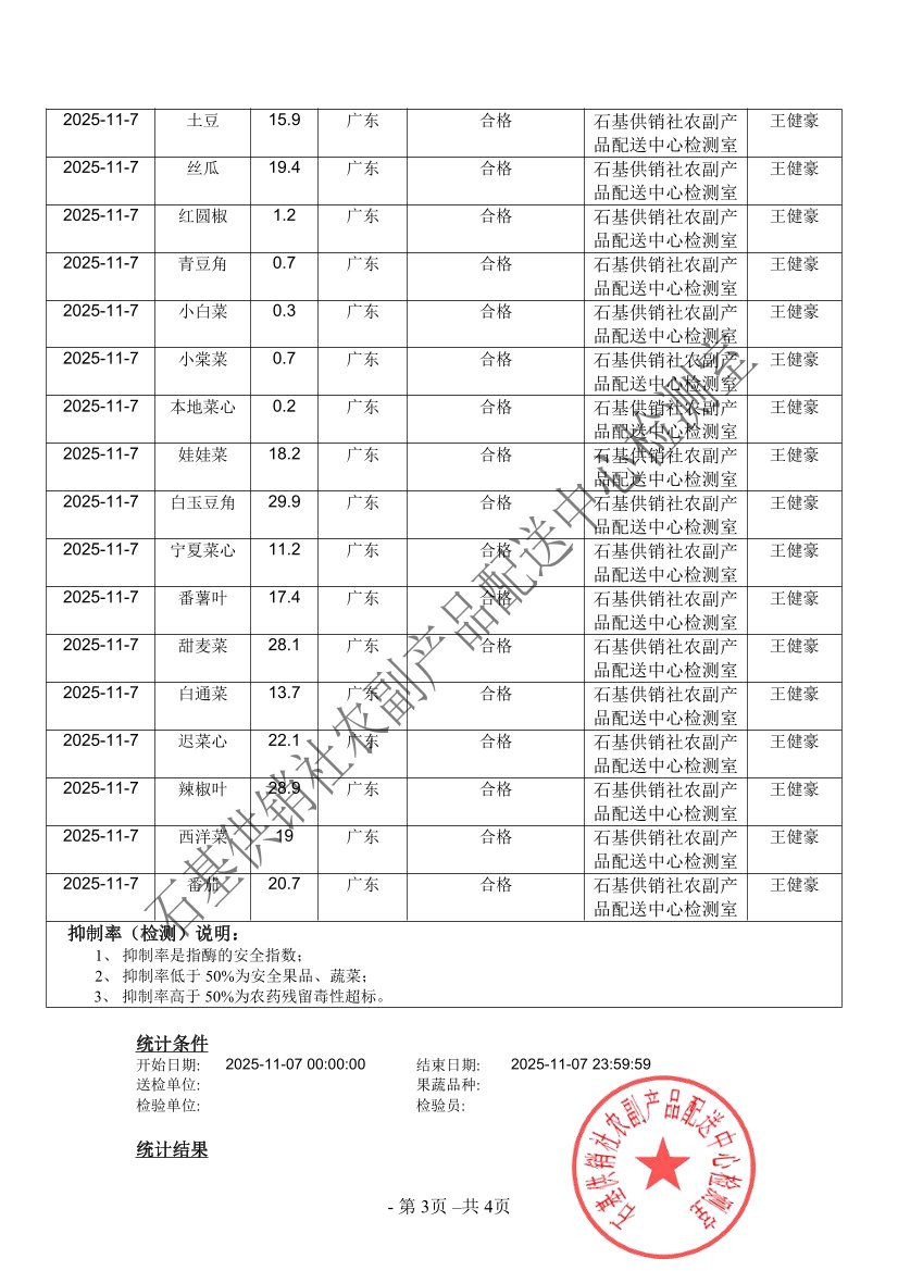2025年11月07日蔬菜农药残留检测