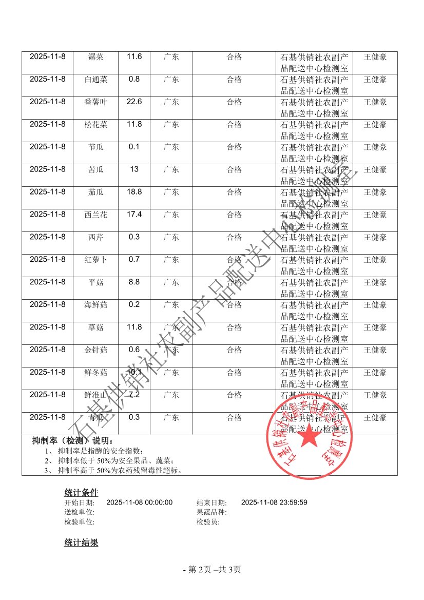 2025年11月08日蔬菜农药残留检测