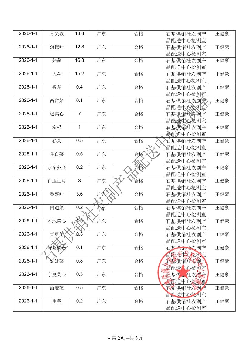 2026年01月01日蔬菜农药残留检测
