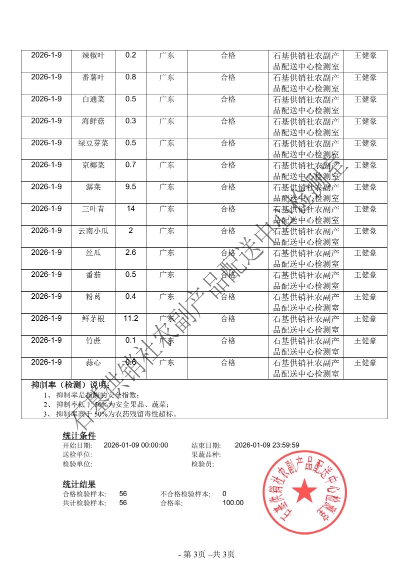 2026年01月09日蔬菜农药残留检测