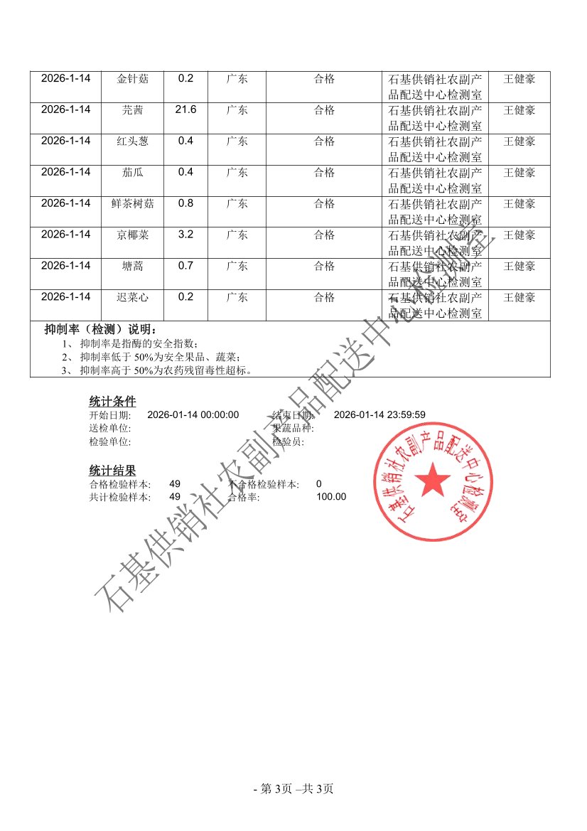 2026年01月14日蔬菜农药残留检测