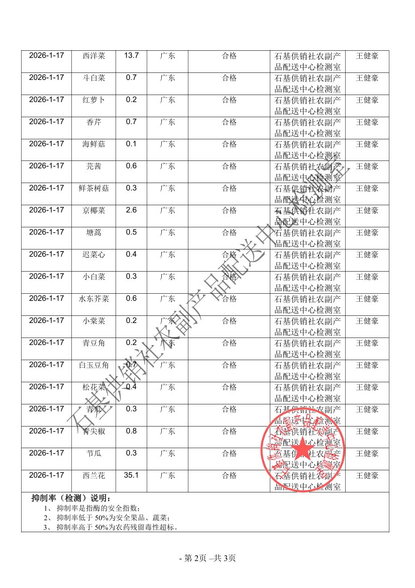 2026年01月17日蔬菜农药残留检测