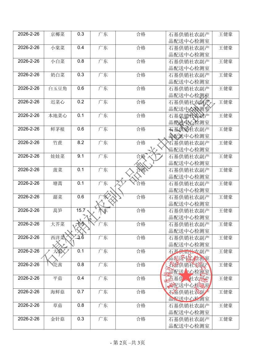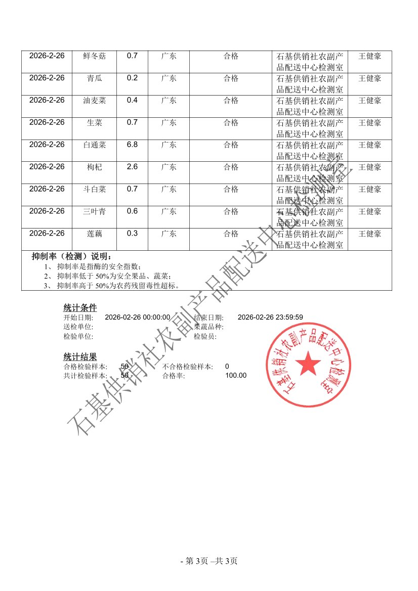 2026年02月26日蔬菜农药残留检测