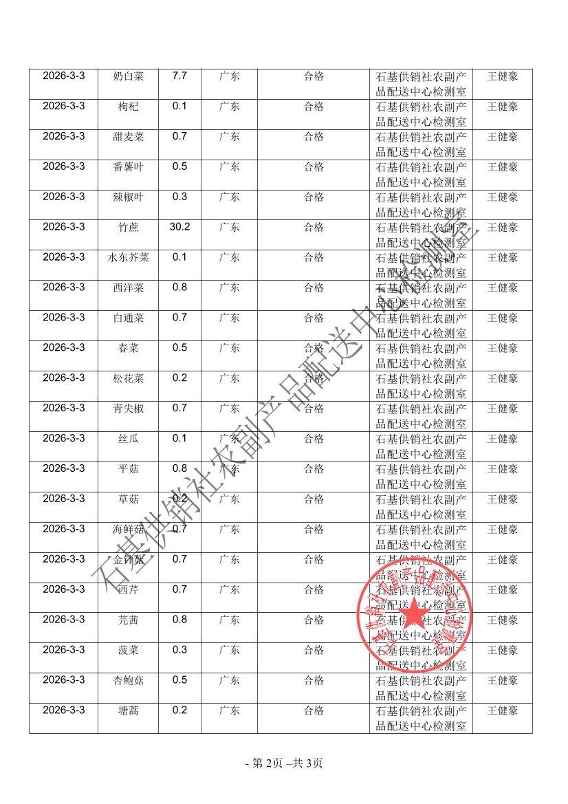 2026年03月03日蔬菜农药残留检测