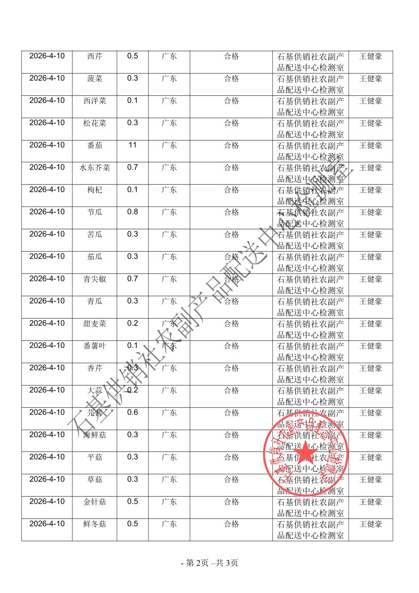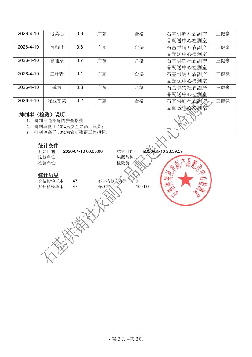 2026年04月10日蔬菜农药残留检测