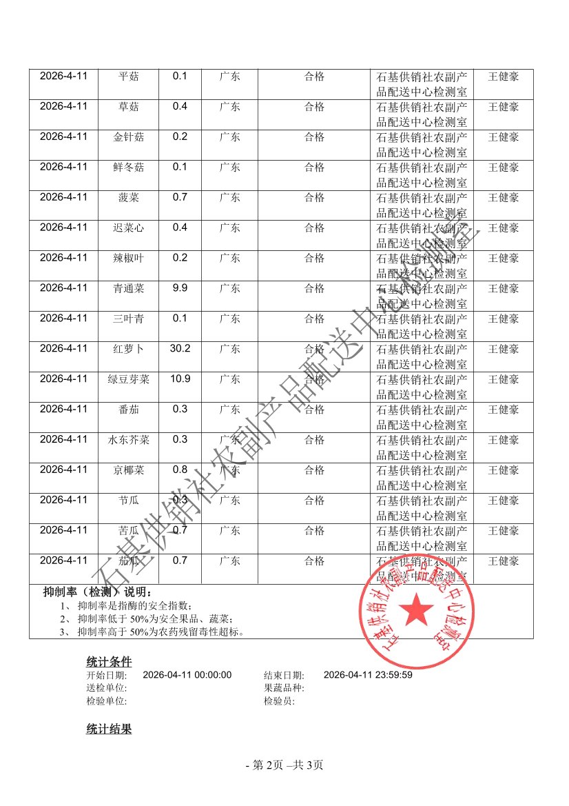 2026年04月11日蔬菜农药残留检测