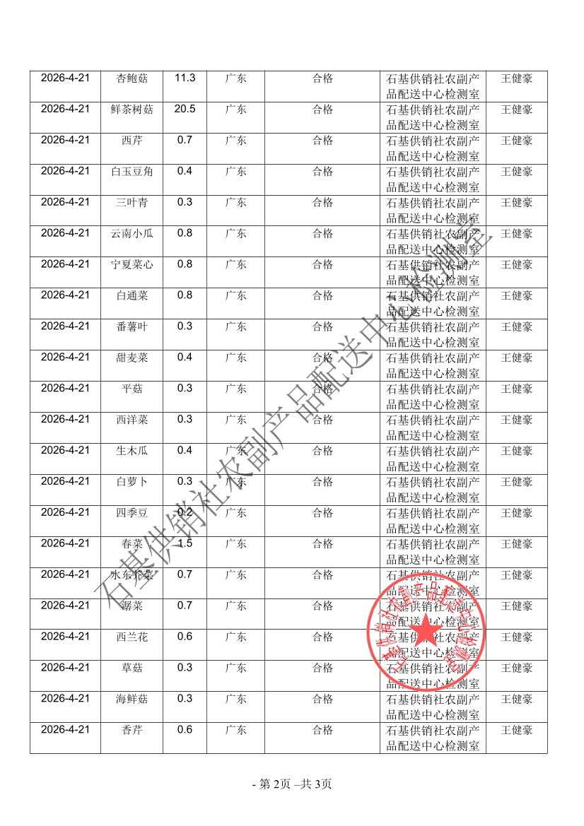 2026年04月21日蔬菜农药残留检测