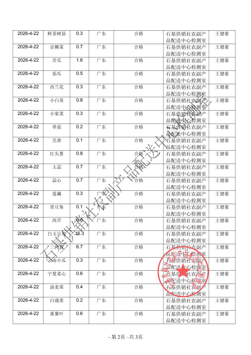 2026年04月22日蔬菜农药残留检测