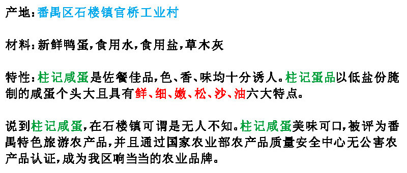 • 【石楼特产】 柱记咸蛋 6只装(070096)(仅限番禺区内配送)